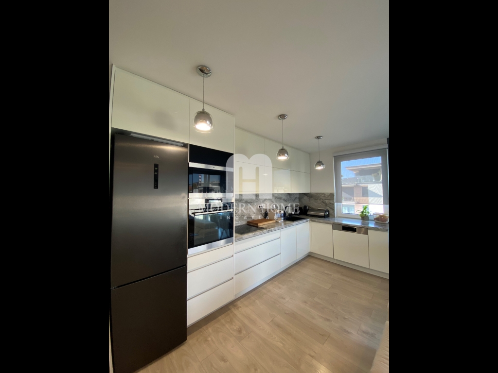 2)elosztása: tágas világos amerikai konyha – nappali – étkező – 3 szoba – gardrób – fürdő – wc – közlekedő, duplaerkély.