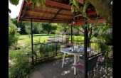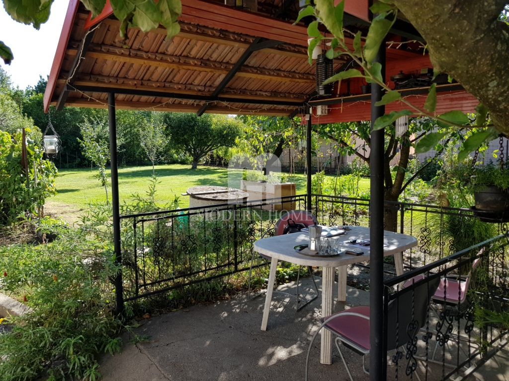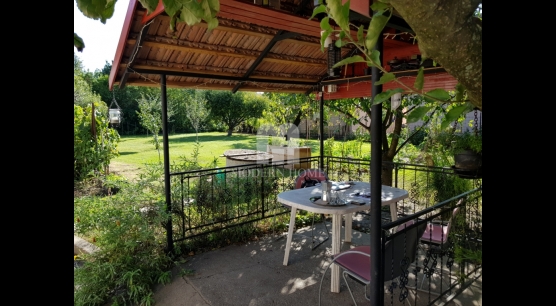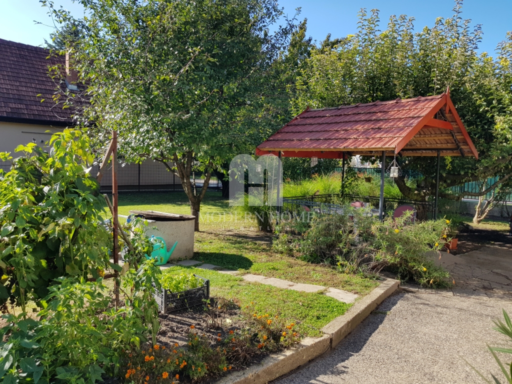 Zárt / gyönyörűen parkosított kertben, családi összejövetelek esetén, grillezésre / bográcsozásra a hely kialakított, gyerekek részére medence / játszóház elhelyezhető. Udvarban kút, tárolók, garázs, helyes szaletli, számos gyümölcsfa ( cseresznye, szőlő, füge, mogyoró, mandula, sárgabarack, őszibarack, körte, meggy, naspolya, veteményes, és ami a szem szájnak ingere---mind megtalálható. Örökzöldek / dísznövények tovább ékestik a mesés kert hangulatát.