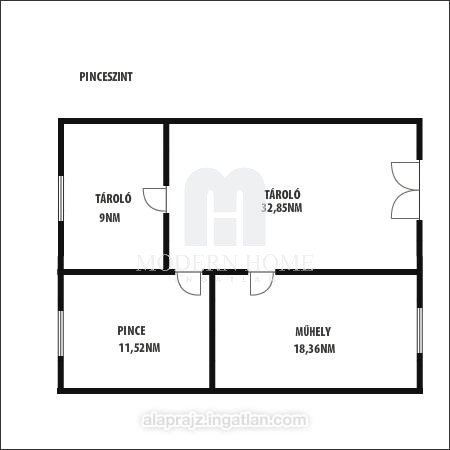 Az ingatlan teljes egészben alápincézett, a pinceszinten megtalálható egy garázs, műhely, tároló, valamint egy kazánház, ahol a vegyestüzelésű kazán helyezkedik el.