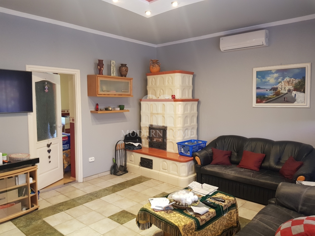Az otthon melegét egy gyönyörűen épített cserépkályha, és gáz – cirkófűtés ( hőtárolós kondenzációs kazán, ami 2 éves ) biztosítja, radiátoros hőleadással. Meleg vizet szintén a kazán biztosítja. Téli hónapokban a kellemes hőérzetről klíma ( is ) gondoskodik, de a nyári – forró melegben friss / hűsítő érzést prezentál.