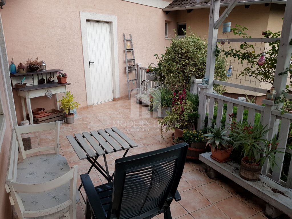 Modern stílusú, kiváló paraméterekkel, elosztással és tájolással igazán letisztult szín és ízlésvilággal, forgalom zajától távol, családbarát környezetű hangulatos ház keresi új gazdáját. A ház aurájához nagymértékben hozzátartozik a hangulatos terasz.