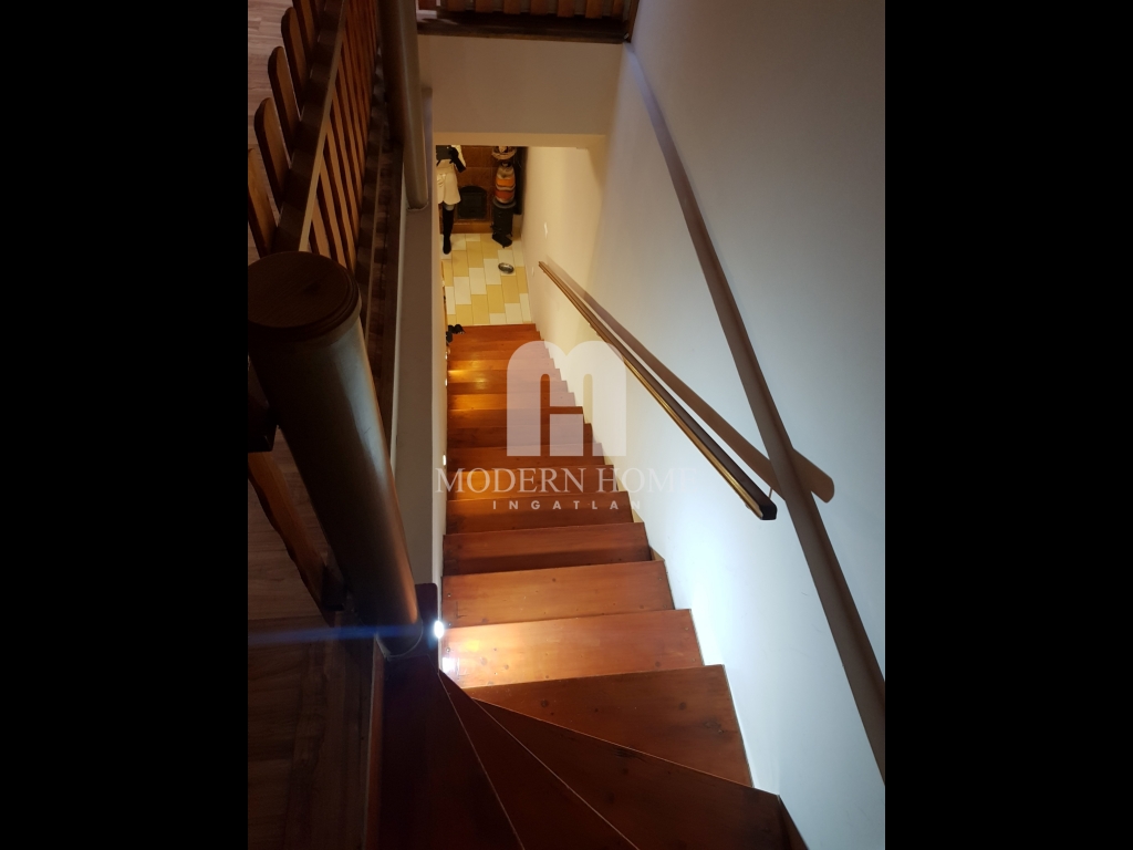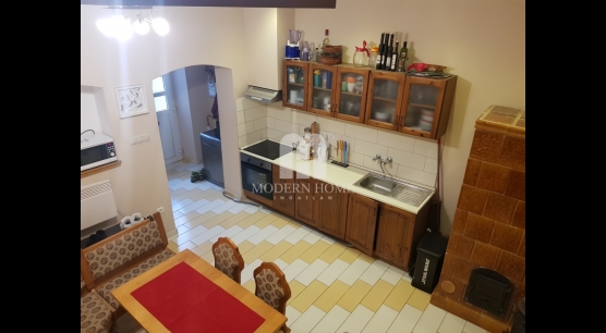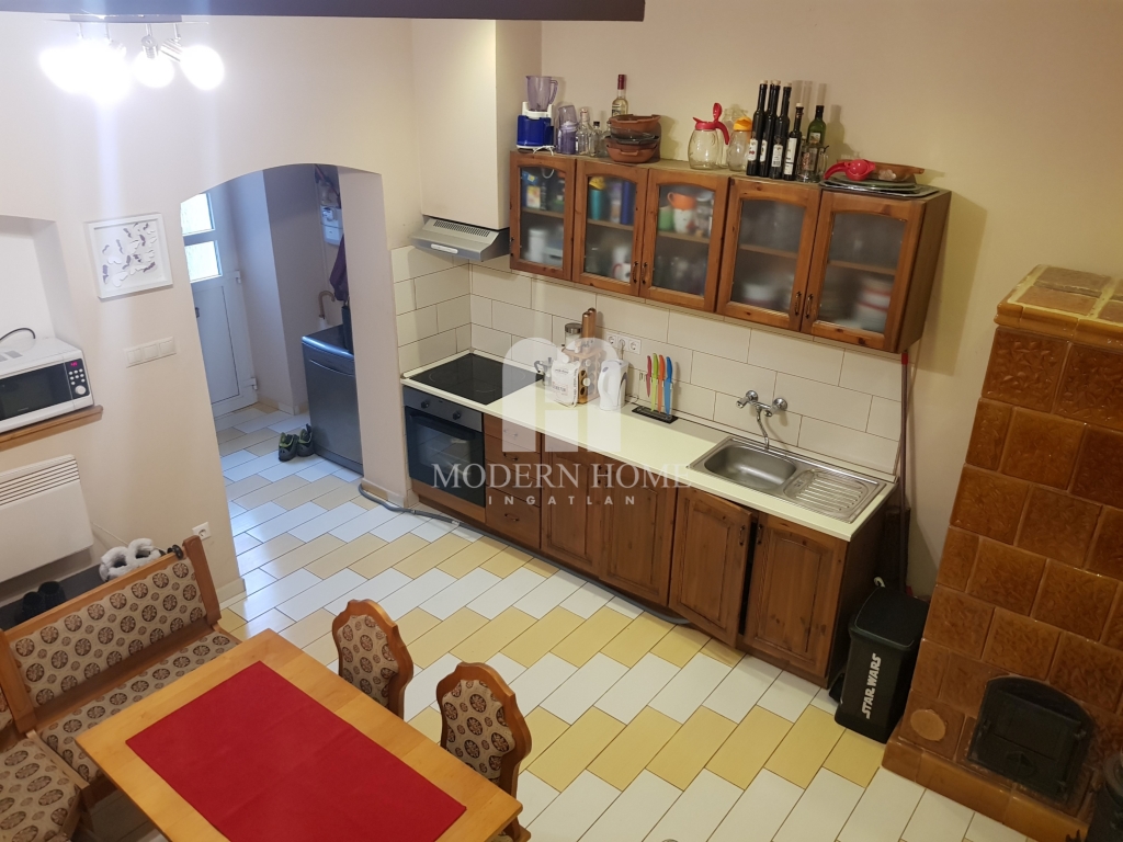 A másik rész egy zárt kapualjon keresztül, kertkapcsolattal egybekötve közelíthető meg. Az igényesen felújított 95 nm lakrészben 3 szoba + konyha + étkező + gardrób + fürdő + wc + konyha + kamra kapott helyett. Burkolatok tekintetében, a szobák laminált parketta, míg a többi helyiség járólap burkolatot kapott.