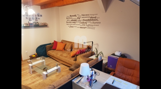 Az egyik rész utcafronti, ( külön bejáratú ) amely 45 nm, nappali + konyha + gardrób + fürdő + wc. ( igény esetén vállalkozásnak is kialakítható )
