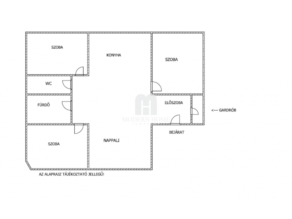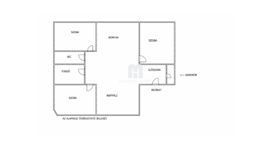 2)elosztása: előtér - amerikai konyha – nappali – étkező – 3 szoba – gardrób – fürdő – wc. ( fürdő/wc külön )