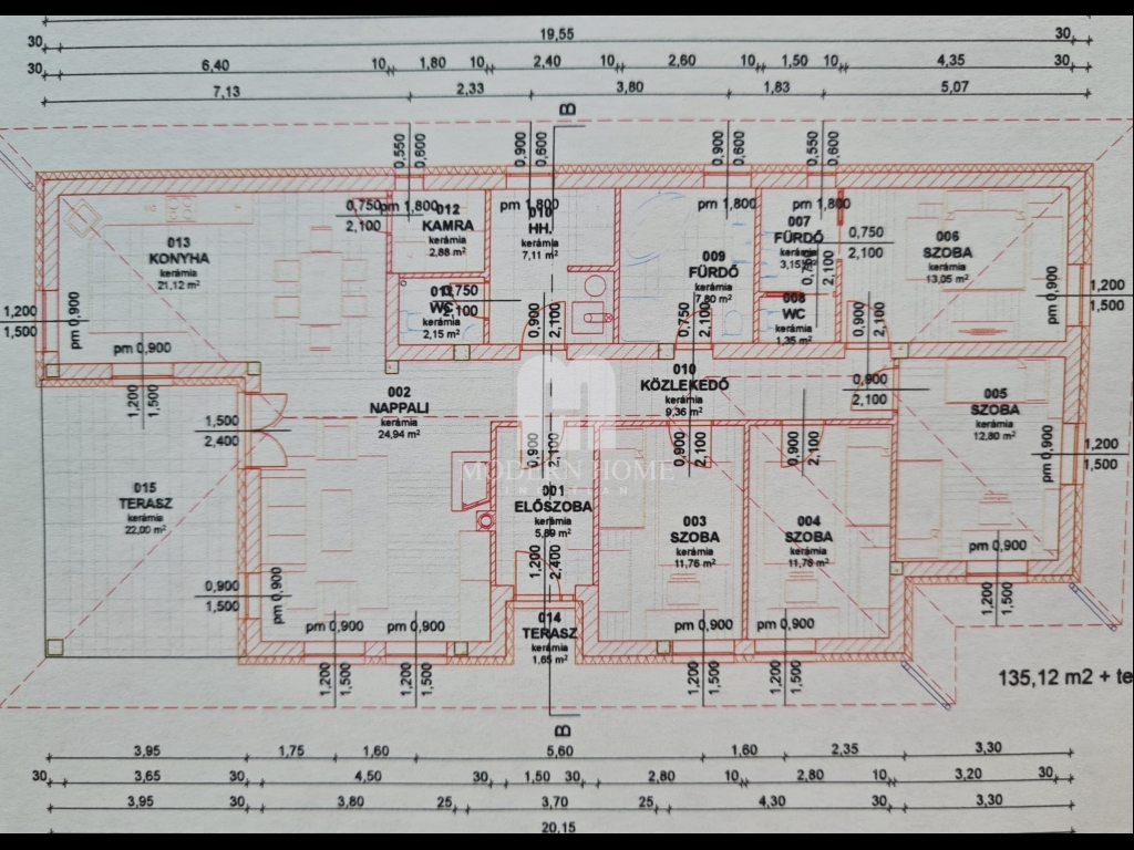 2) ház mérete: 135 nm + 25 nm terasz