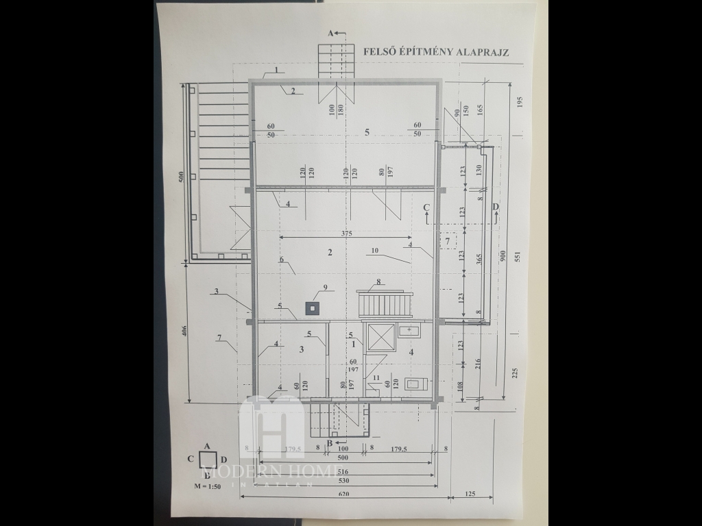 A felső szinten ( ami 20 nm ) tetőtéri szoba + 5 nm fedett terasz.