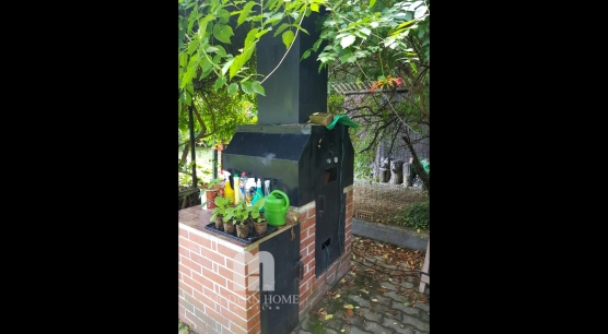 Udvarban gépkocsibeálló, szerszámtároló, több funkciós kemence, szanetli + fatároló, automatikus - programozható öntözőrendszer esőérzékelővel.