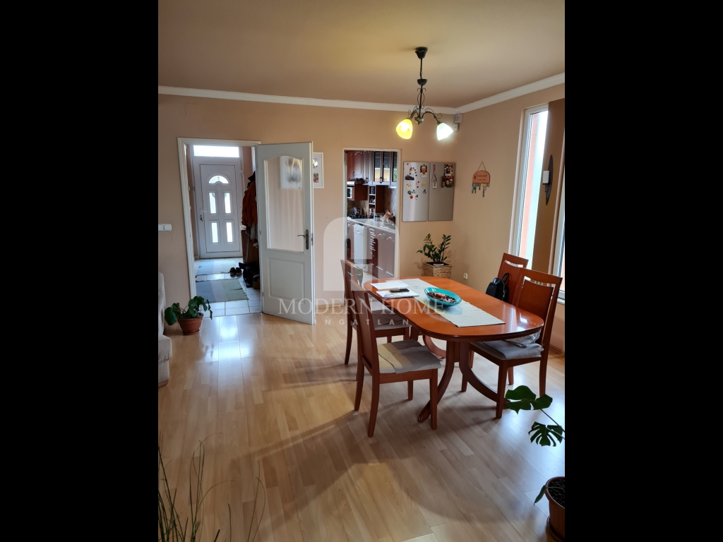 Modern stílusú, kiváló paraméterekkel, elosztással és tájolással, igazán letisztult szín és ízlésvilággal, forgalom zajától távol, családbarát környezetű hangulatos ház keresi új gazdáját. A ház aurájához nagymértékben hozzátartozik a hangulatos terasz ( 21 nm ).